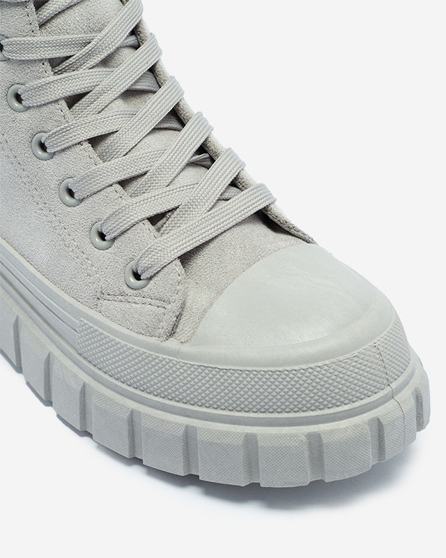 - Мега стильні жіночі черевики на масивній платформі, виконані з еко-замші. Модель на шнурівці, середина підшита тканиною. Верх має гумову вставку на носі. Ідеальна пара на кожен день! СВІТЛО-СІРІ НЕУТЕПЛЕНІ ЧОБОТИ НЕТАРА