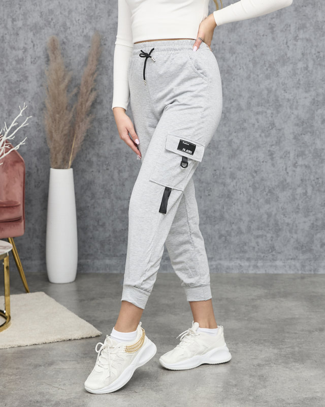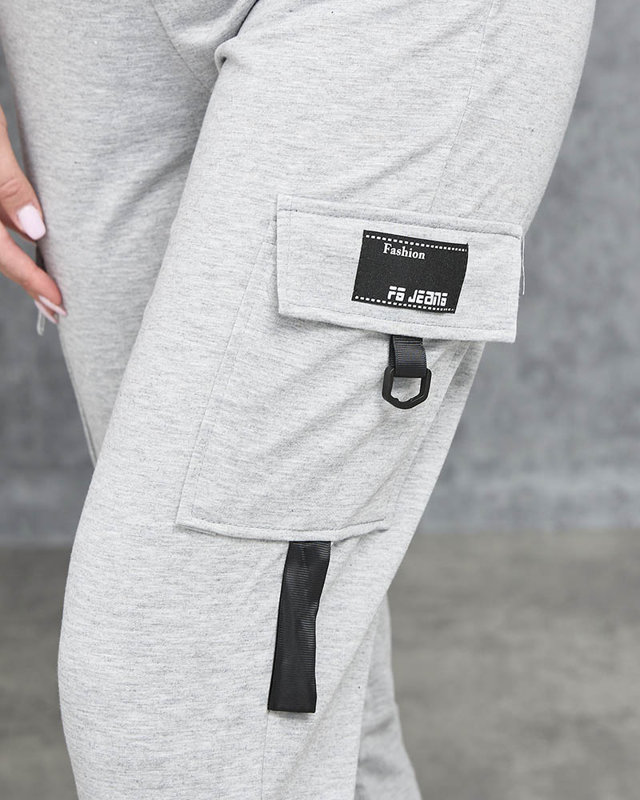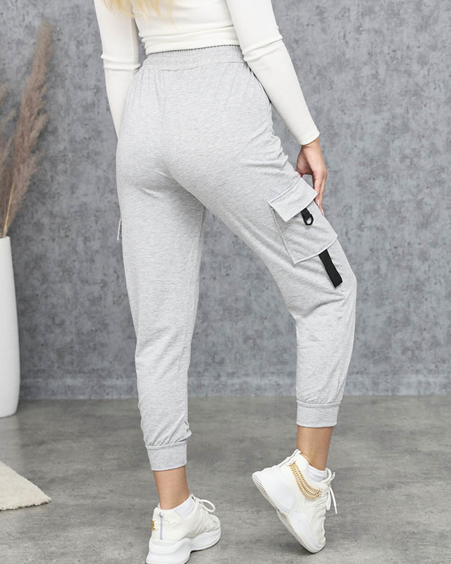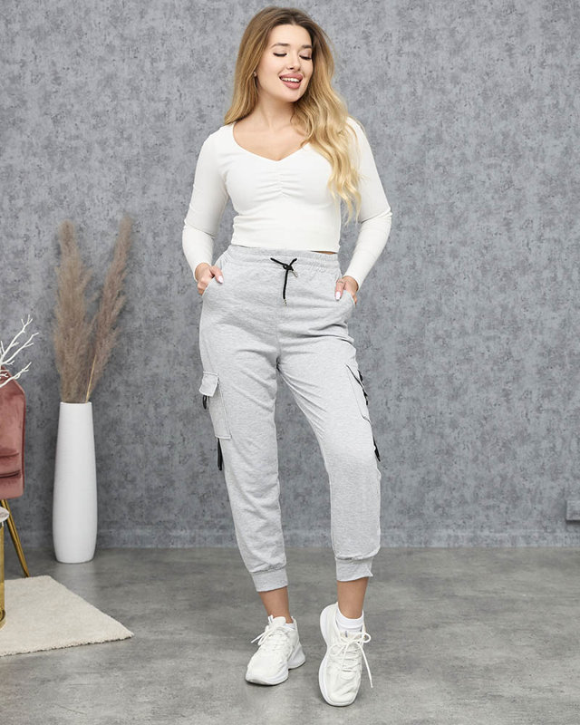 - Жіночі спортивні штани карго з високою талією з м'якої, еластичної тканини. Модель з 4-ма врізними кишенями, має еластичний пояс, на талії зав'язки. ПРИМІТКА: Похибка вимірювання (+/-) 1 см.