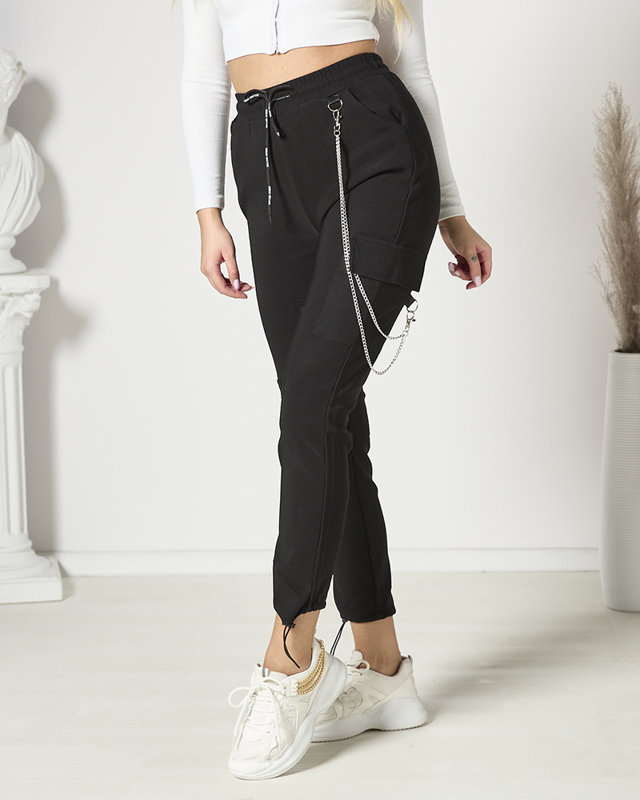 Чорні жіночі бойові штани з ланцюжком - Одяг