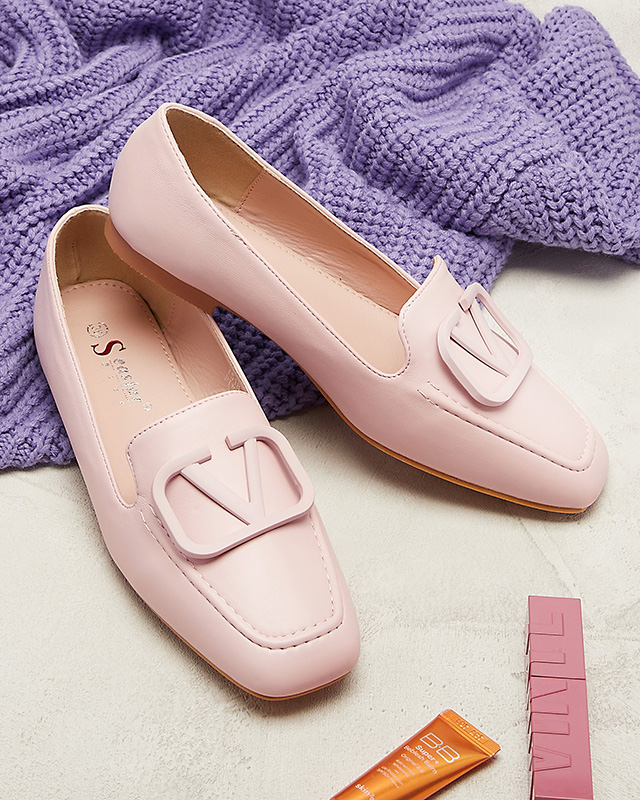 Світло-рожеві жіночі мокасини з орнаментом в тон Terika - Взуття