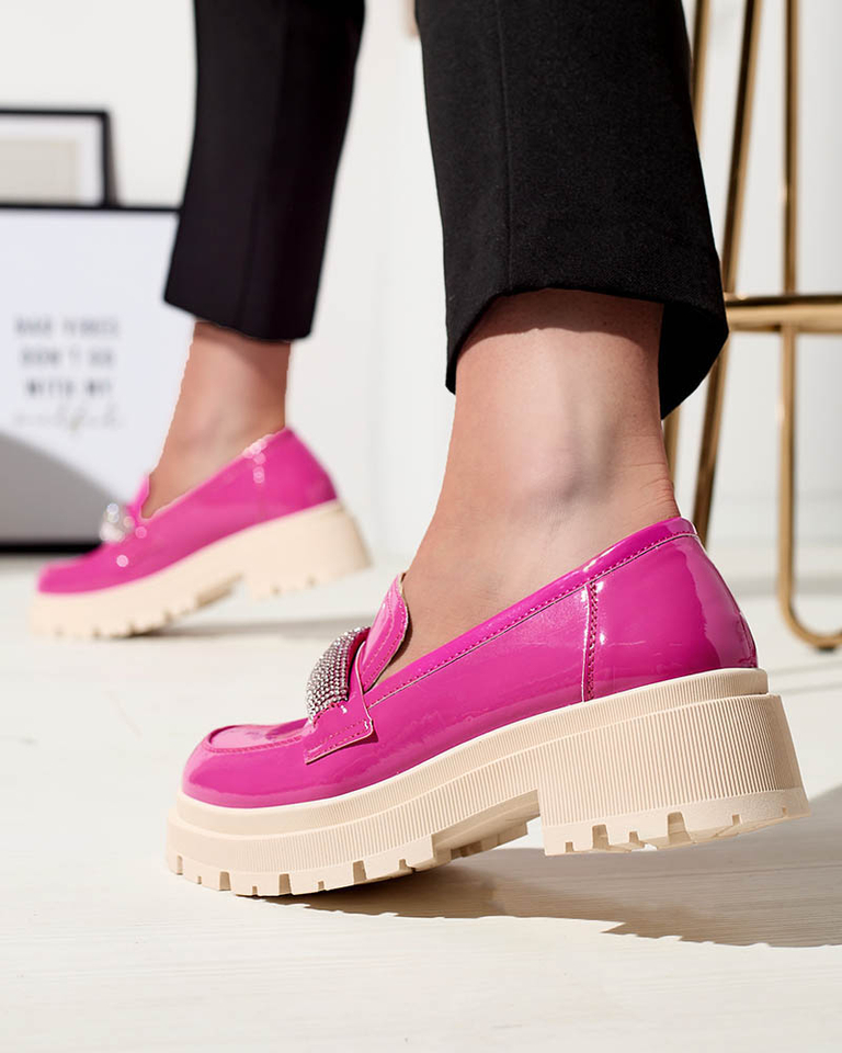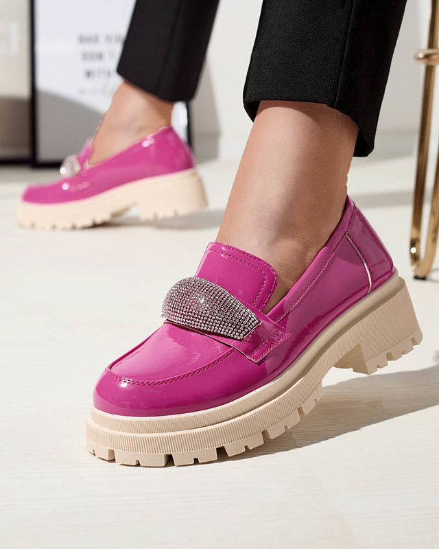 Лаковані жіночі мокасини кольору фуксії з орнаментом Averado-Footwear