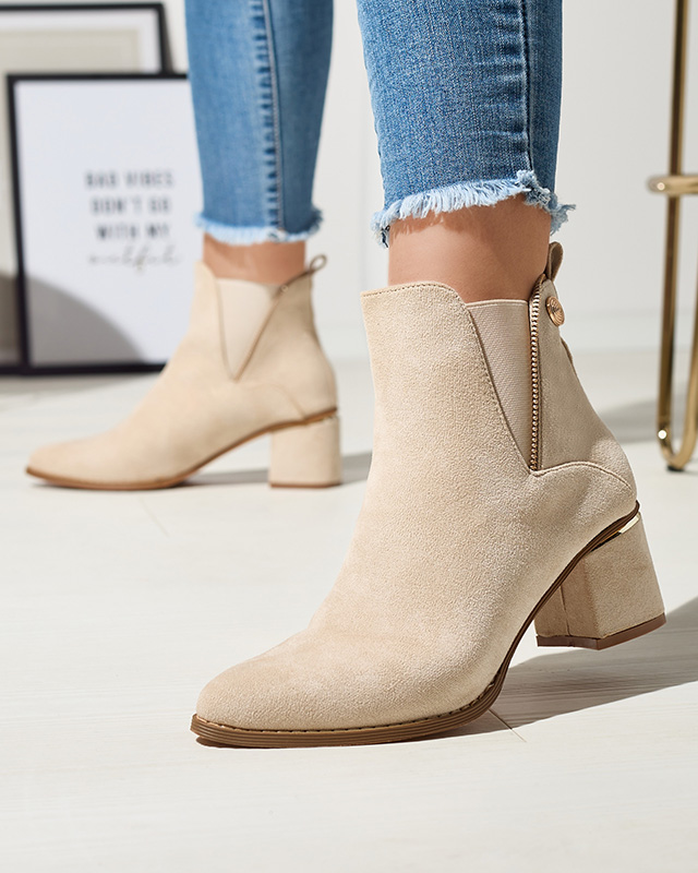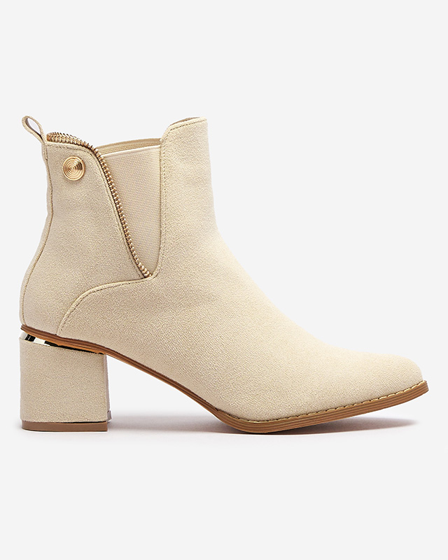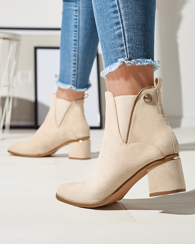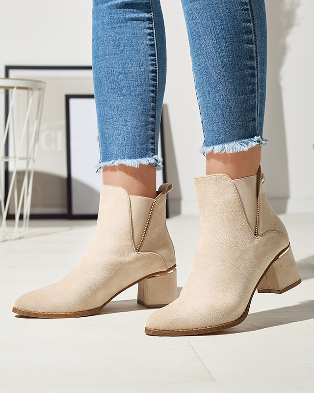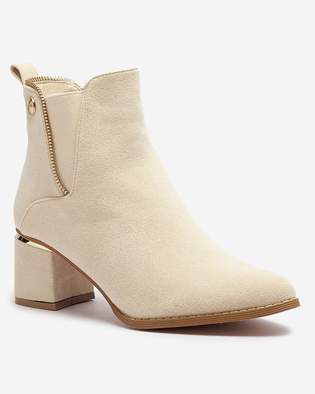 Жіночі ботильйони на низькій шпильці кольору екрю Xizia - Взуття