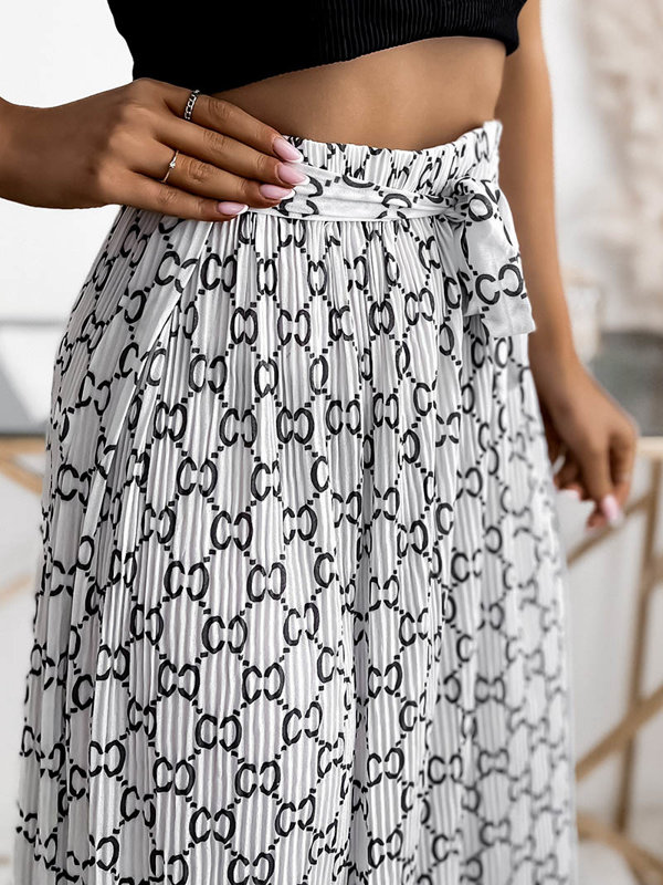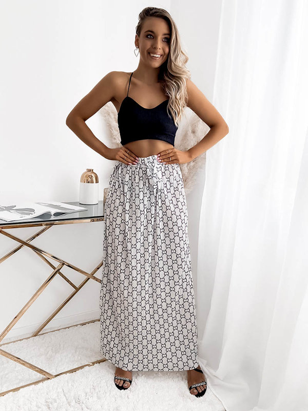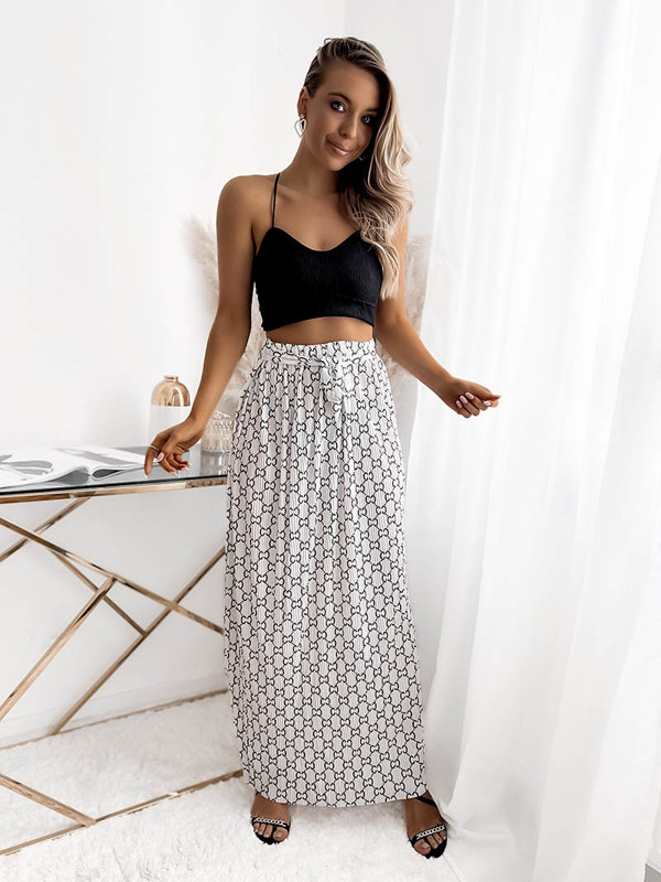 Біла жіноча плісирована спідниця максі з візерунками - Одяг