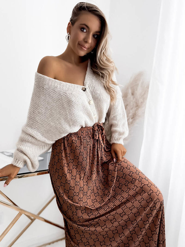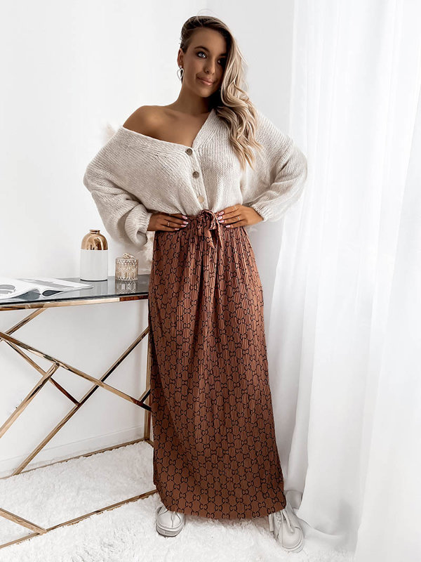 Коричнева жіноча плісирована візерунчаста спідниця максі - Одяг