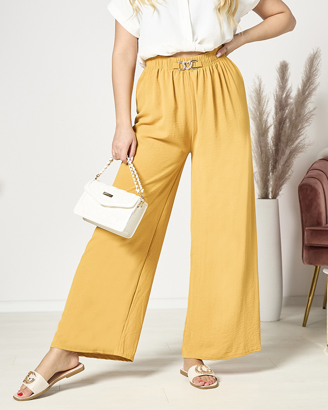 Жіночі широкі штани палаццо гірчичного кольору - Одяг
