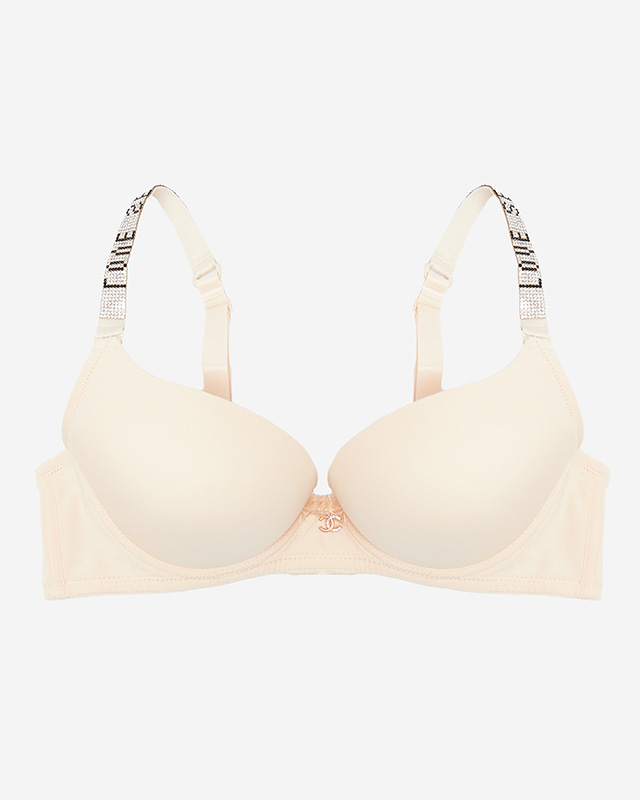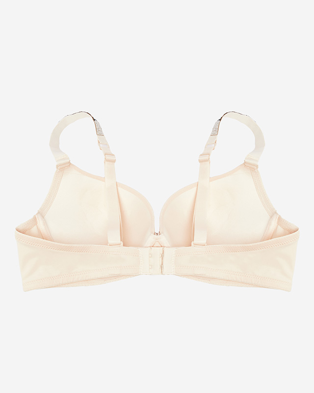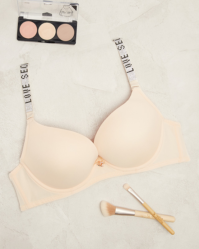 Бежевий однотонний бюстгальтер на кісточках з декорованими бретелями - Нижня білизна