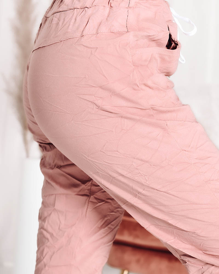 - Універсальні жіночі тканинні штани з прямими штанинами. Модель на еластичному поясі та штанинах. З боків кишені. Чудове доповнення до літнього образу!