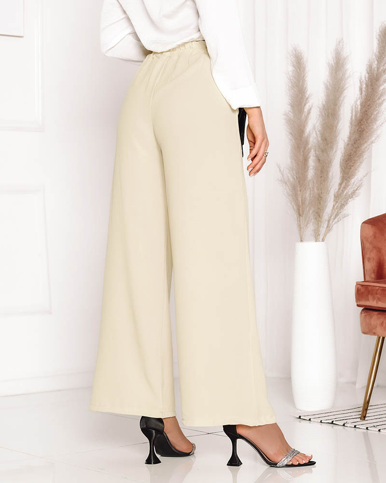 - Стильні жіночі широкі штани палаццо. Модель виконана з легкої та повітряної тканини, має еластичний пояс та оздоблення золотистого кольору. З боків дві врізні кишені. Ідеальний акцент для вашого образу! ПРИМІТКА: Похибка вимірювання (+/-) 1 см.