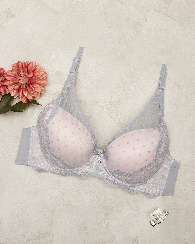 Сіро-рожевий жіночий бюстгальтер з мереживом - Нижня білизна