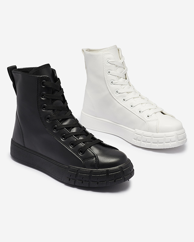 - Оригінальні жіночі високі спортивні туфлі на товстій підошві. Верх виконаний з екологічної шкіри, устілка з тканини. Модель на шнурівці. Носіть зі стильними джинсами!