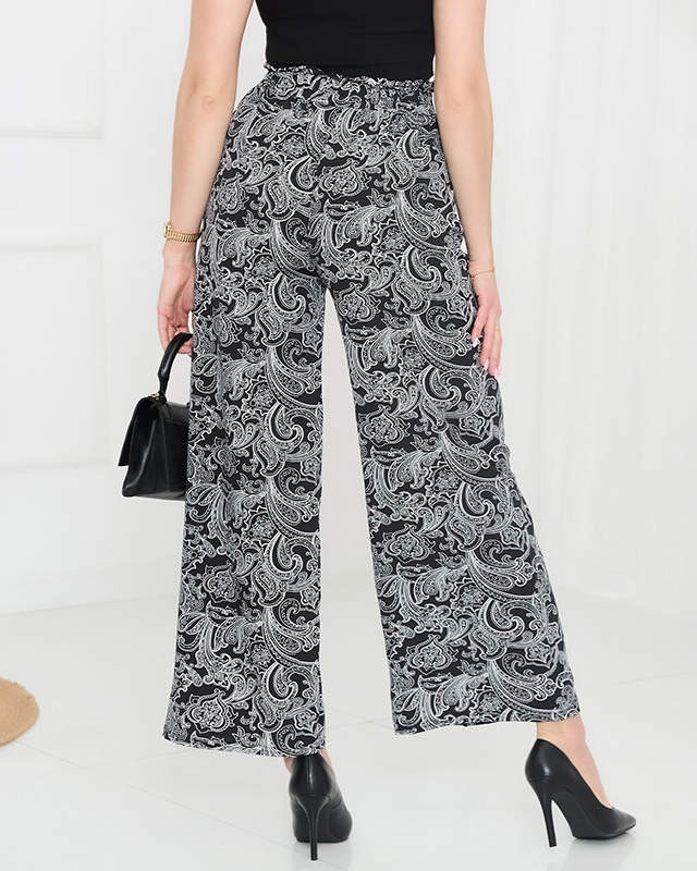 - Унікальні жіночі широкі штани палаццо, прикрашені принтом. Модель виконана з легкої та повітряної тканини, має еластичний пояс та зав'язку, що підкреслює талію. Чудовий вибір на весну! ПРИМІТКА: Похибка вимірювання (+/-) 1 см.