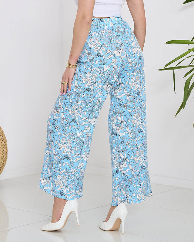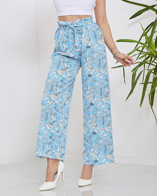 Жіночі сині штани палаццо з білими квітами - Одяг