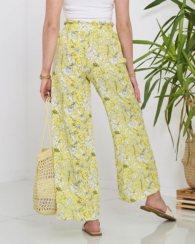 Жіночі жовті штани палаццо з білими квітами - Одяг