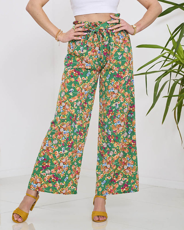 Жіночі зелені штани палаццо з помаранчевими квітами - Одяг