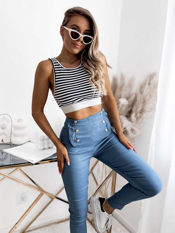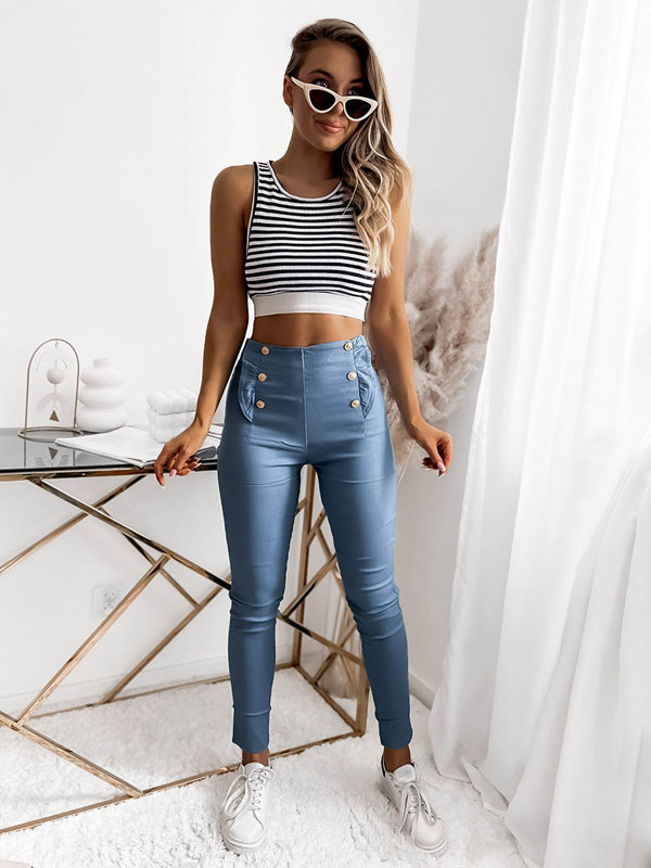 Сині жіночі штани-теггінг на ґудзиках - Одяг