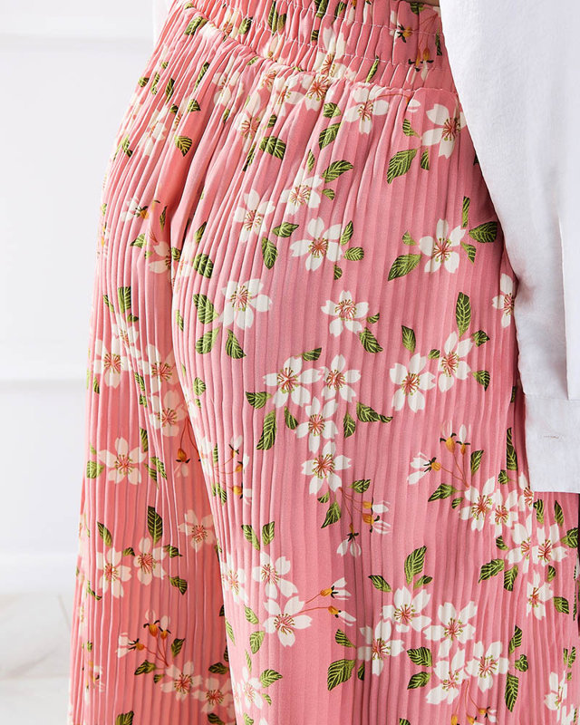 Жіночі рожеві тканинні штани в квіточку - Одяг