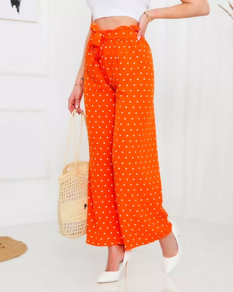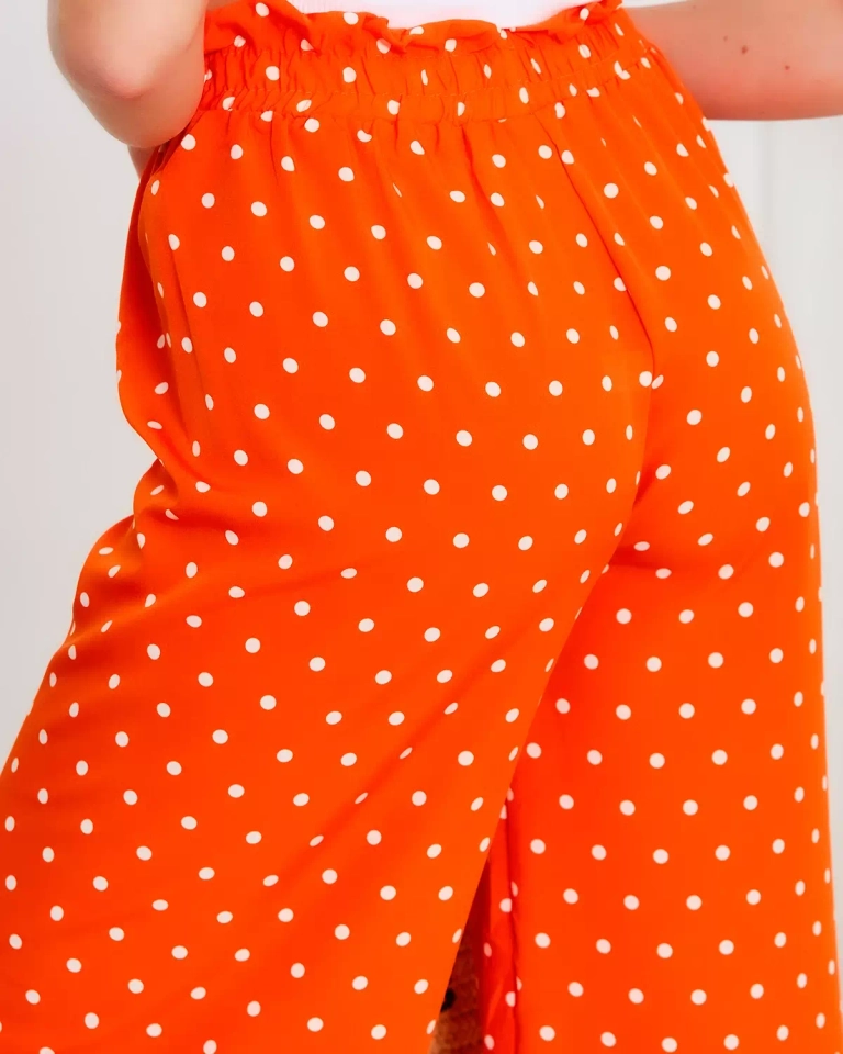 Жіночі широкі брюки в помаранчевий горох - Одяг
