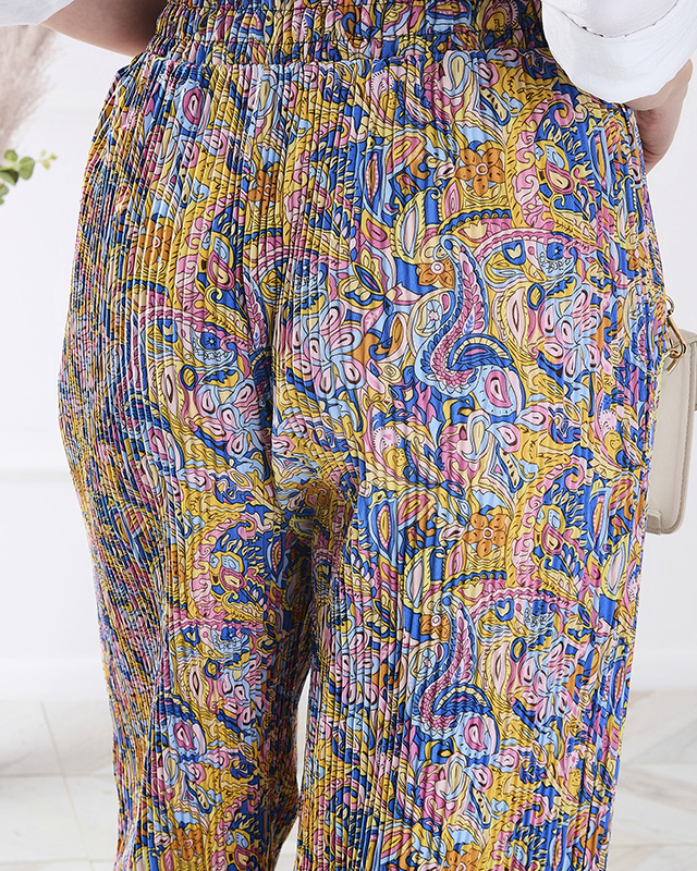 Жіночі візерункові брюки з широкими штанинами жовтого кольору - Одяг