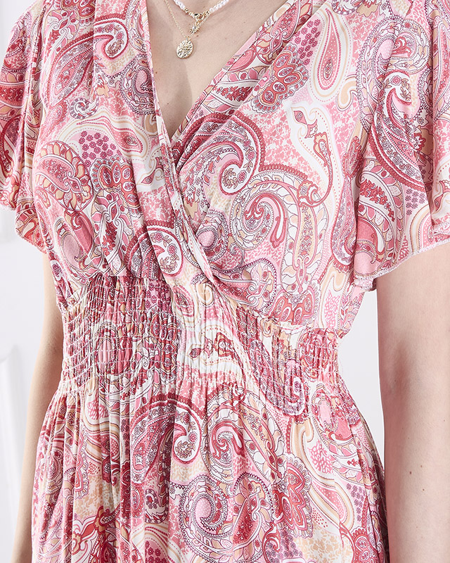 Рожева жіноча сукня міді з візерунком Одяг