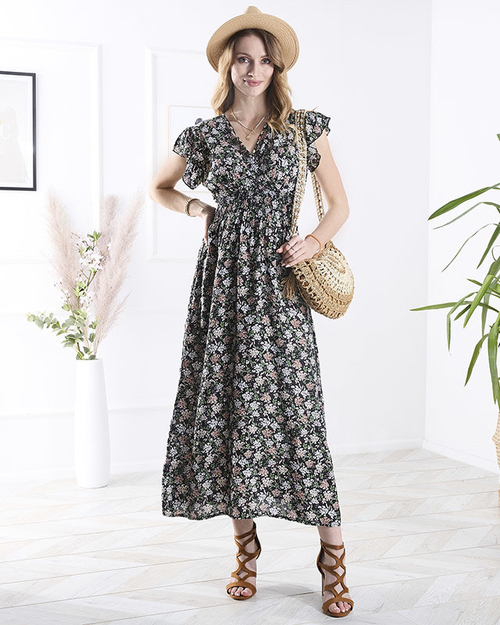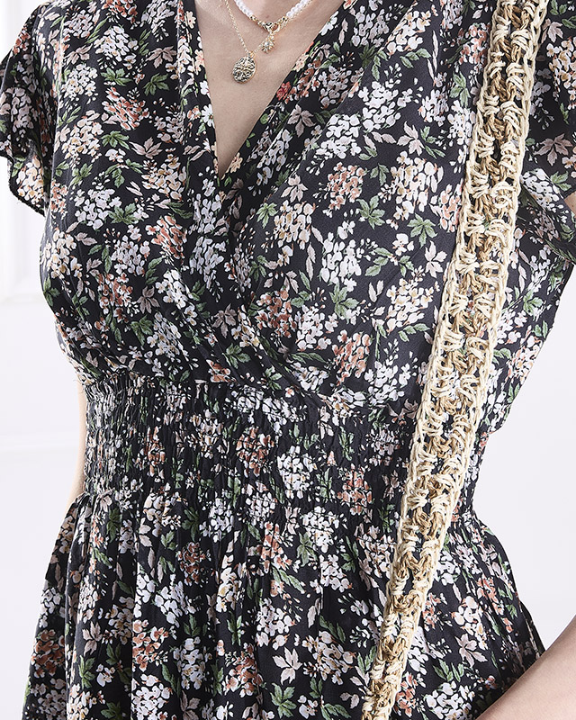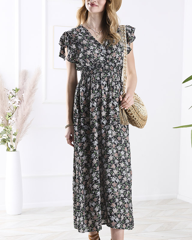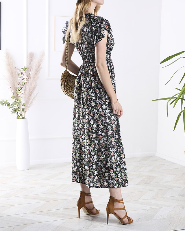 Чорна жіноча квіткова сукня міді - Одяг