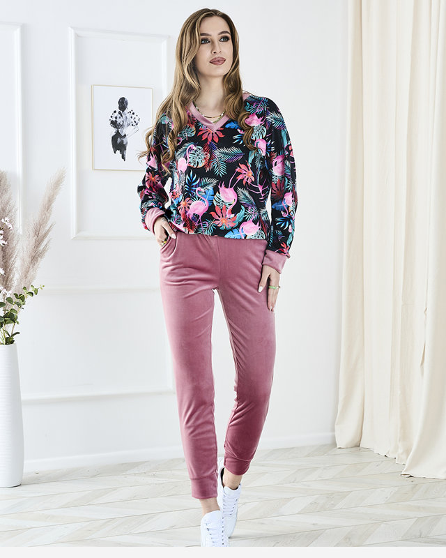 Велюровий спортивний комплект з візерунчастим світшотом і рожевими штанами - Одяг