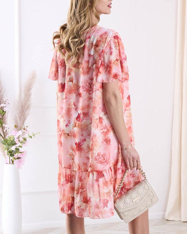 Жіноча сукня до коліна з принтом і воланом помаранчевого кольору - Одяг