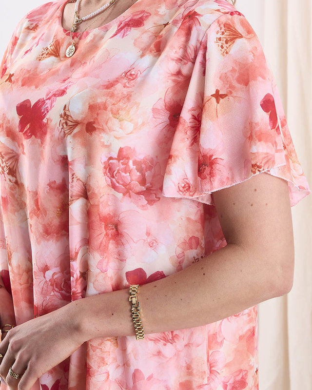 - Стильна сукня вільного крою оверсайз, з коротким рукавом. Матеріал виготовлення - поліестер. Сукня має круглий виріз горловини та оздоблена воланом. Модель довжиною до коліна, декорована принтом. ПРИМІТКА: Похибка вимірювання (+/-) 1 см.