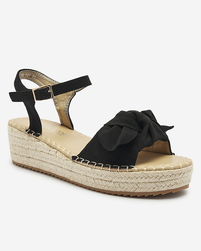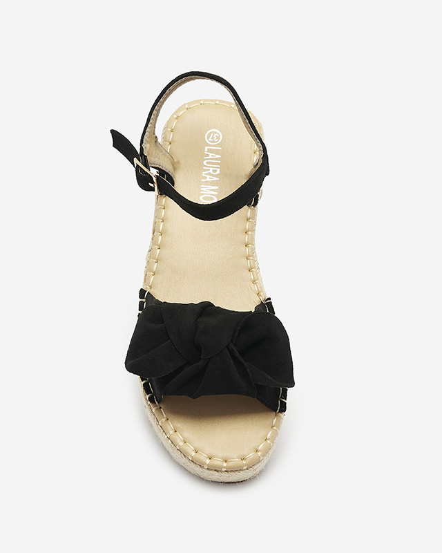 Чорні жіночі босоніжки на низьких підборах з бантом Mosinta - Взуття
