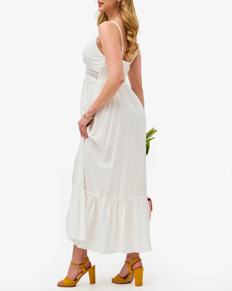Жіноча довга сукня без бретелей білого кольору - Одяг