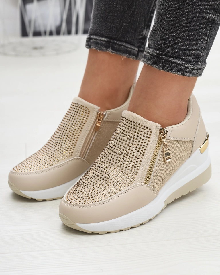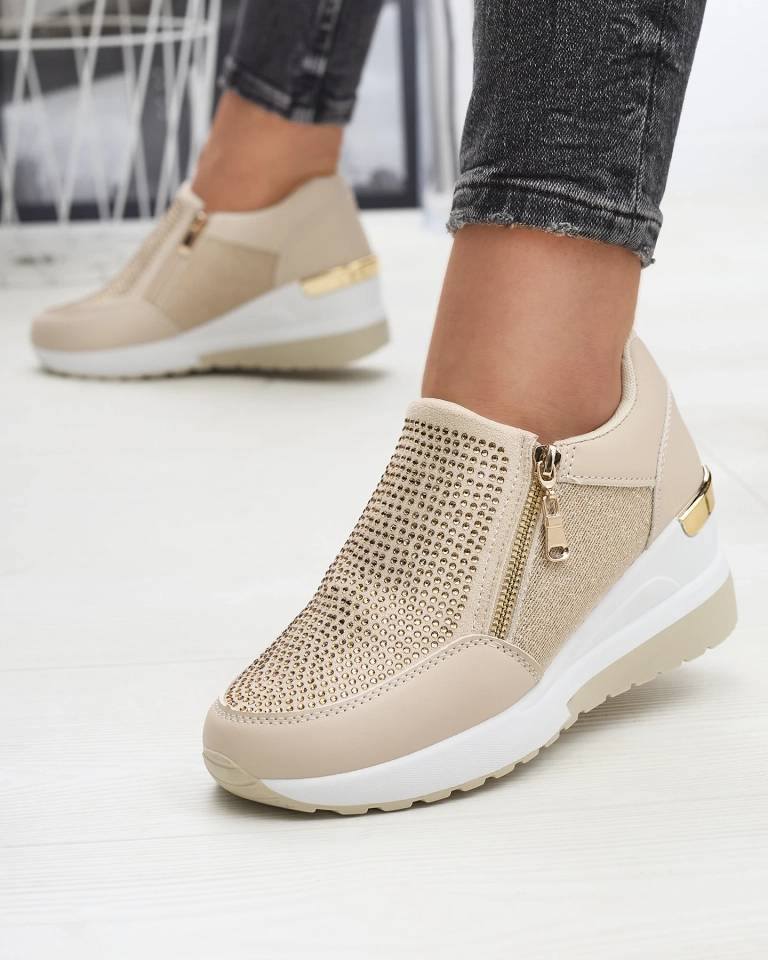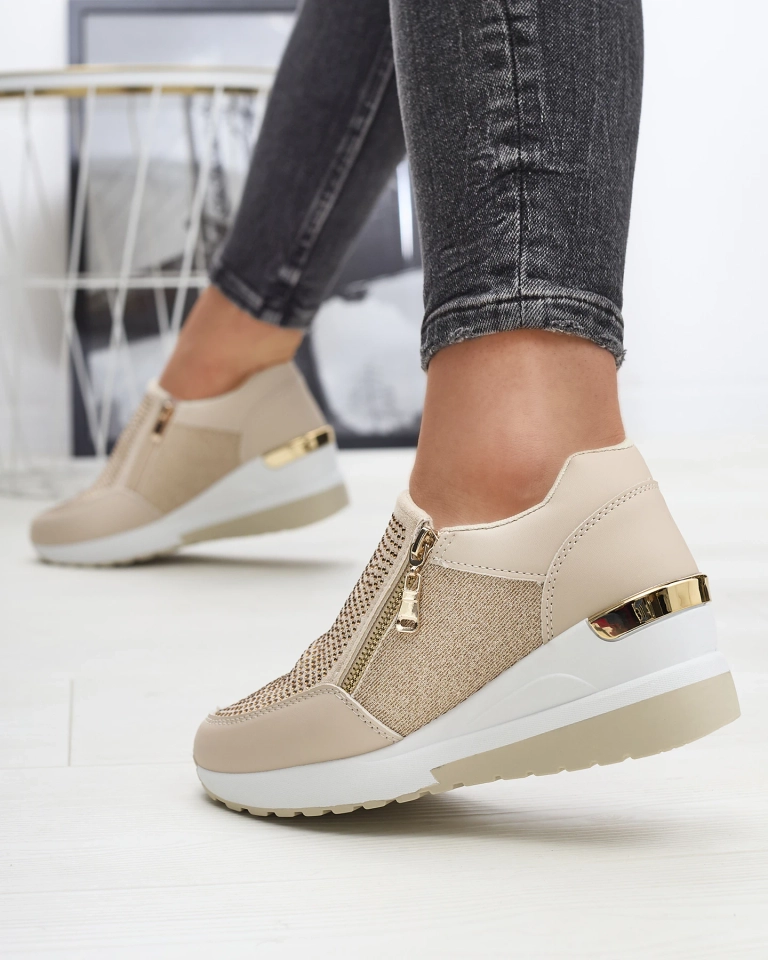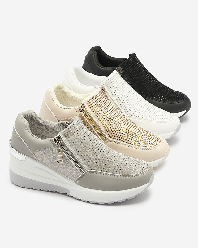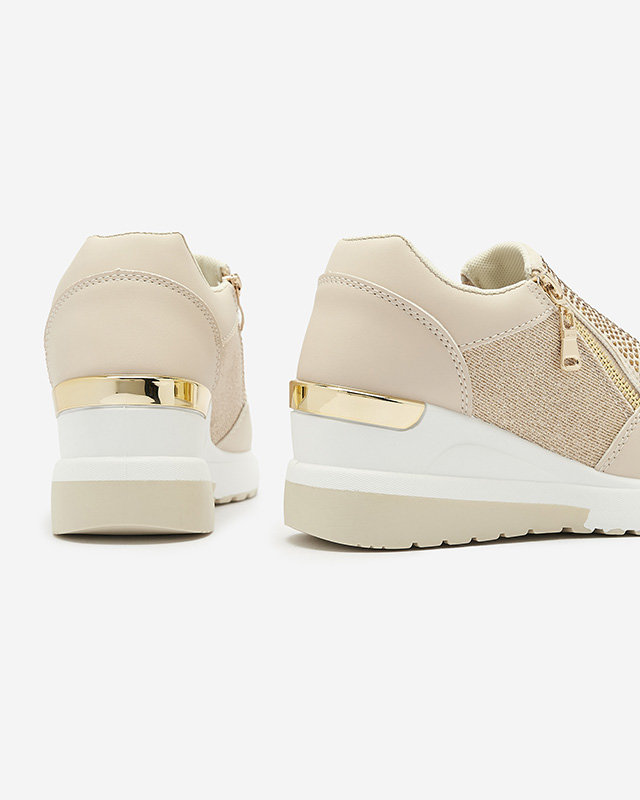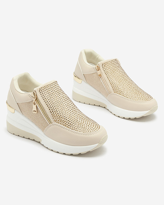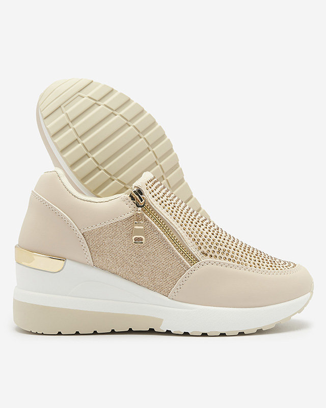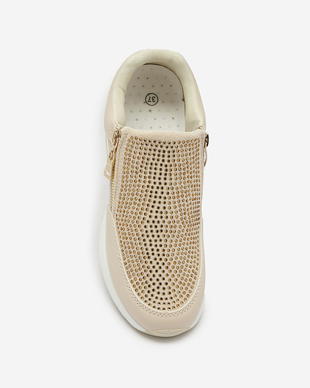 Бежеві жіночі спортивні туфлі на платформі з цирконами Martela - Взуття