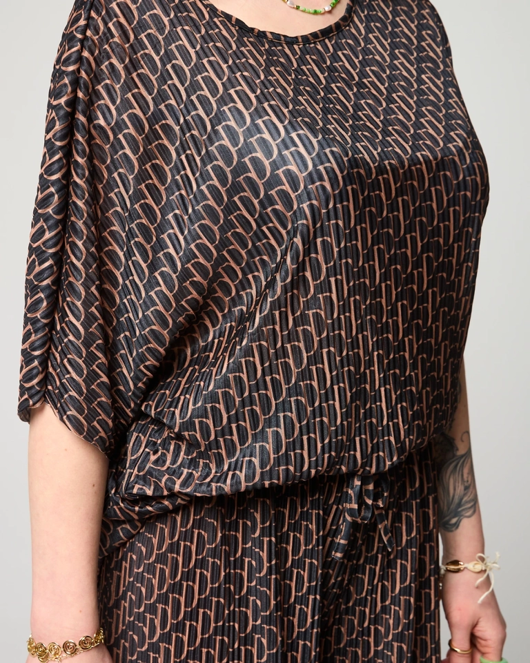 Чорний жіночий плісирований комплект з коричневим візерунком - Одяг