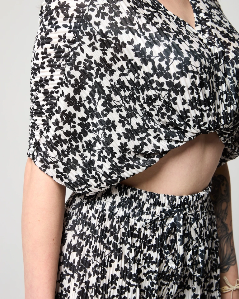 Білий жіночий плісирований комплект з чорними квітами - Одяг