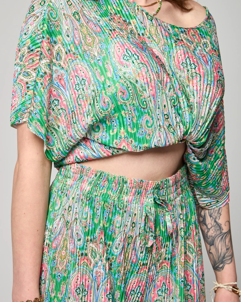 Зелено-рожевий ребристий жіночий комплект з принтом - Одяг