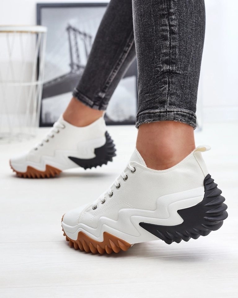 • Стильне жіноче спортивне взуття а-ля кеди на суцільній підошві. Високий верх на шнурівці, виконаний з тканинного матеріалу. Середина взуття підбита тканиною. Зручні та ідеально підходять для повсякденного носіння!
