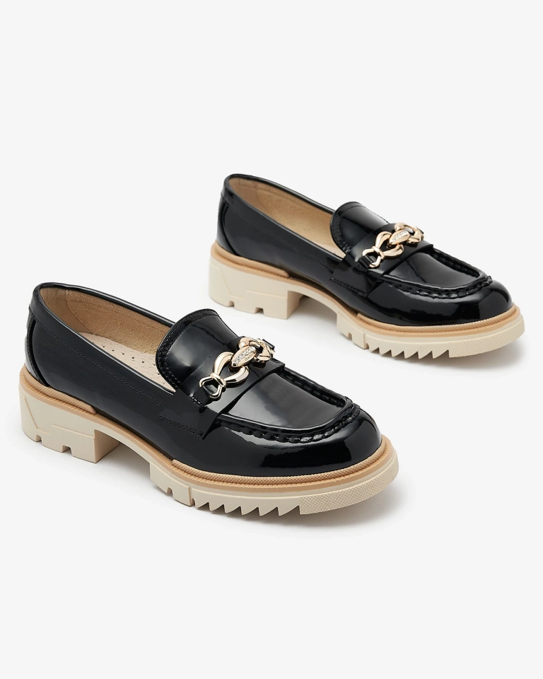 Чорні лаковані жіночі мокасини з ланцюжком Sotella - Взуття