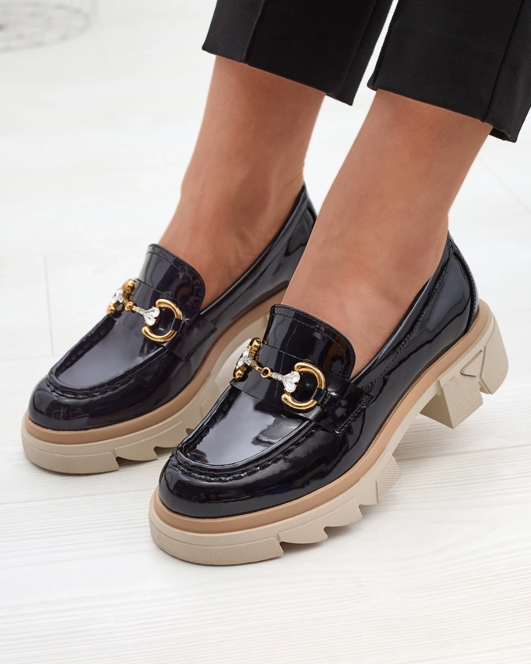 Лаковані чорні жіночі мокасини з кристалами Inriw - Взуття
