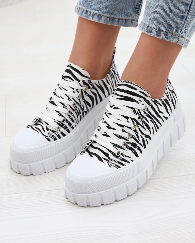 Чорно-білі жіночі візерункові кеди на платформі Ziratia - Взуття