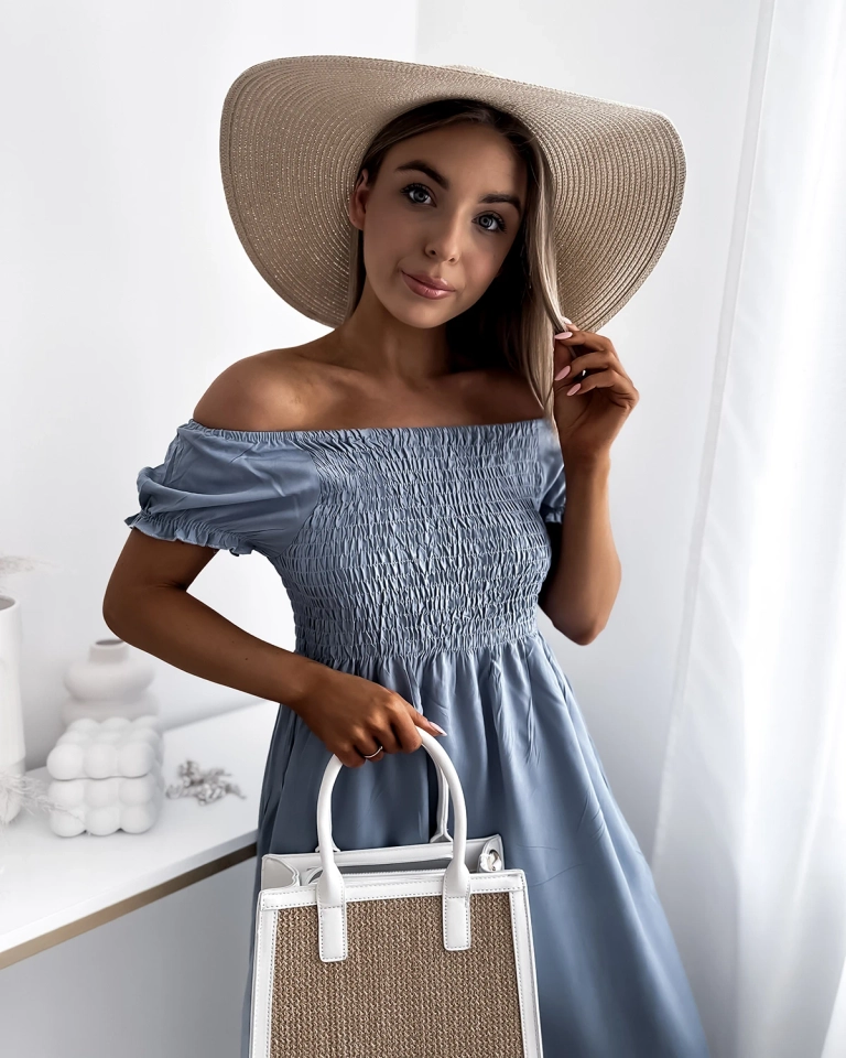 - Легка жіноча сукня довжини міді, виконана з бавовняної тканини. Модель з круглим вирізом горловини а-ля гімнастерка, на резинці по ширині грудей і талії. Модель з коротким рукавом. Носіть з босоніжками! ПРИМІТКА: Похибка вимірювання (+/-) 1 см.