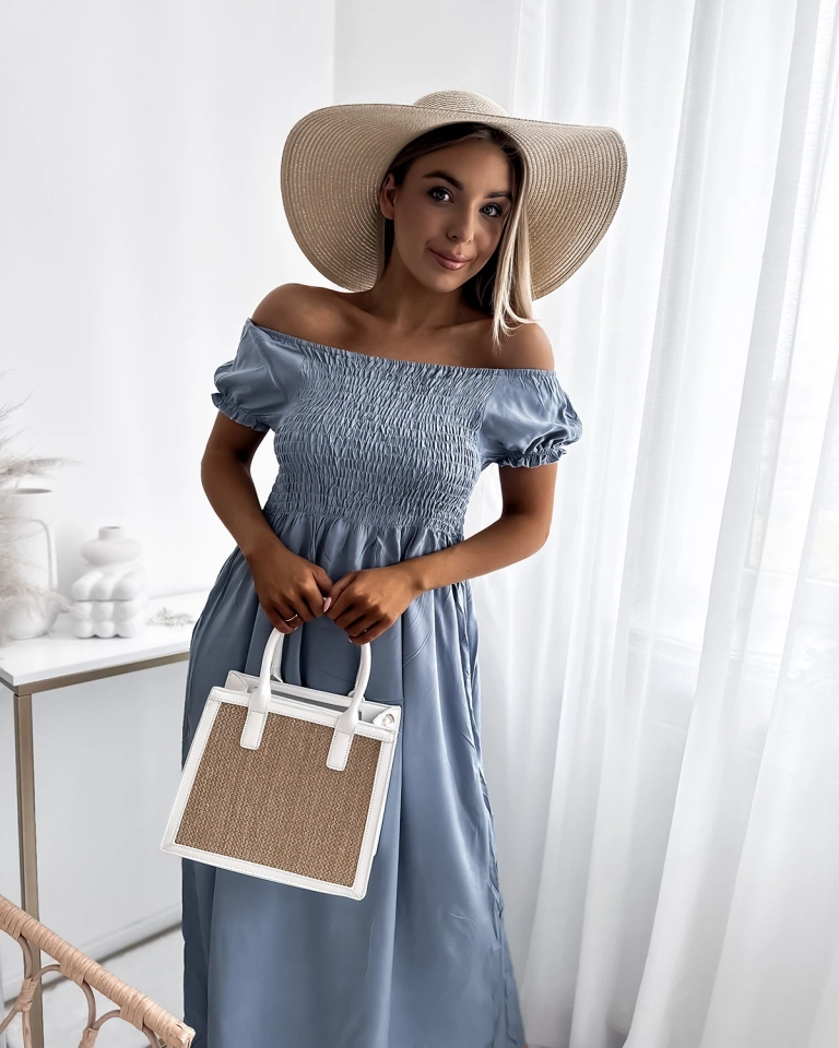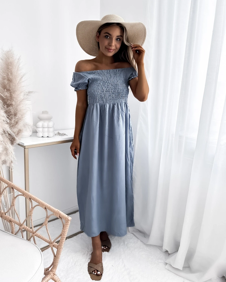 Довга жіноча сукня а-ля гімнастерка синього кольору - Одяг