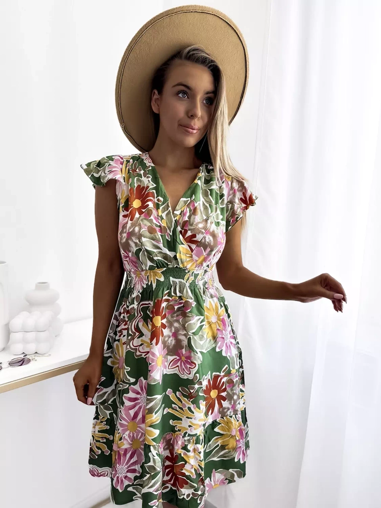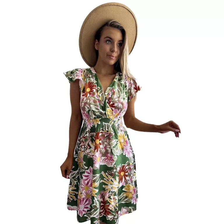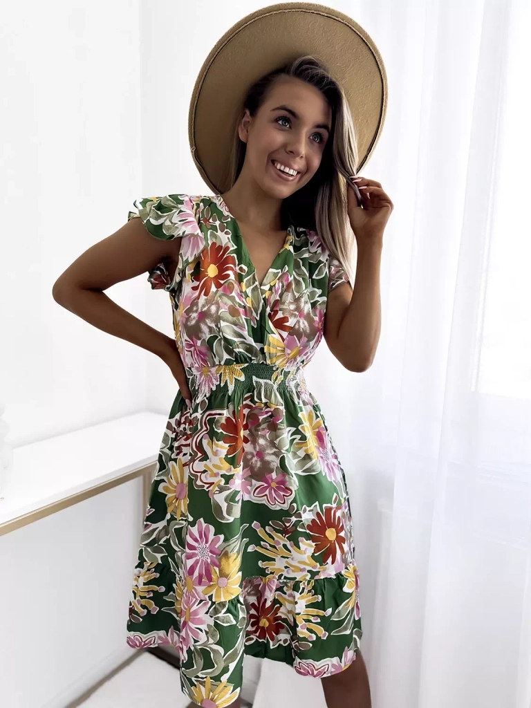 Жіноча міні-сукня з квітковим принтом зеленого кольору - Одяг