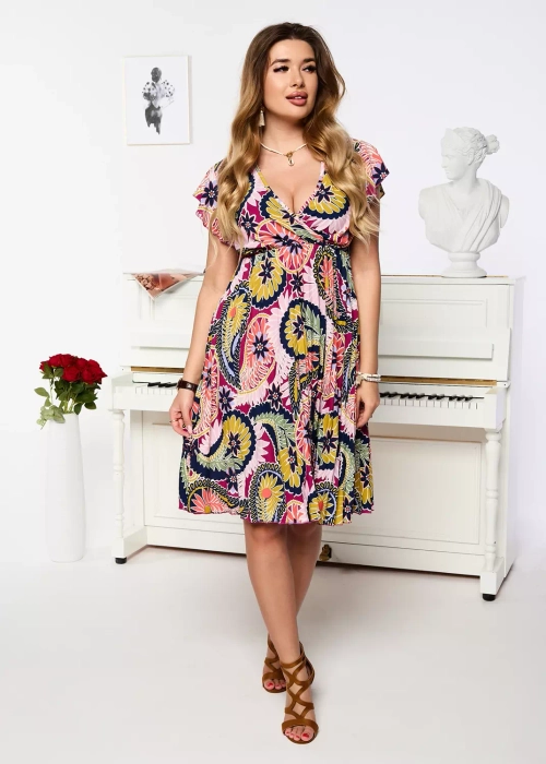 - Жіноча літня сукня до коліна, виконана з легкої плісированої тканини. Модель з вирізом горловини та коротким рукавом. Ідеально поєднується з босоніжками! ПРИМІТКА: Похибка вимірювання (+/-) 1 см.