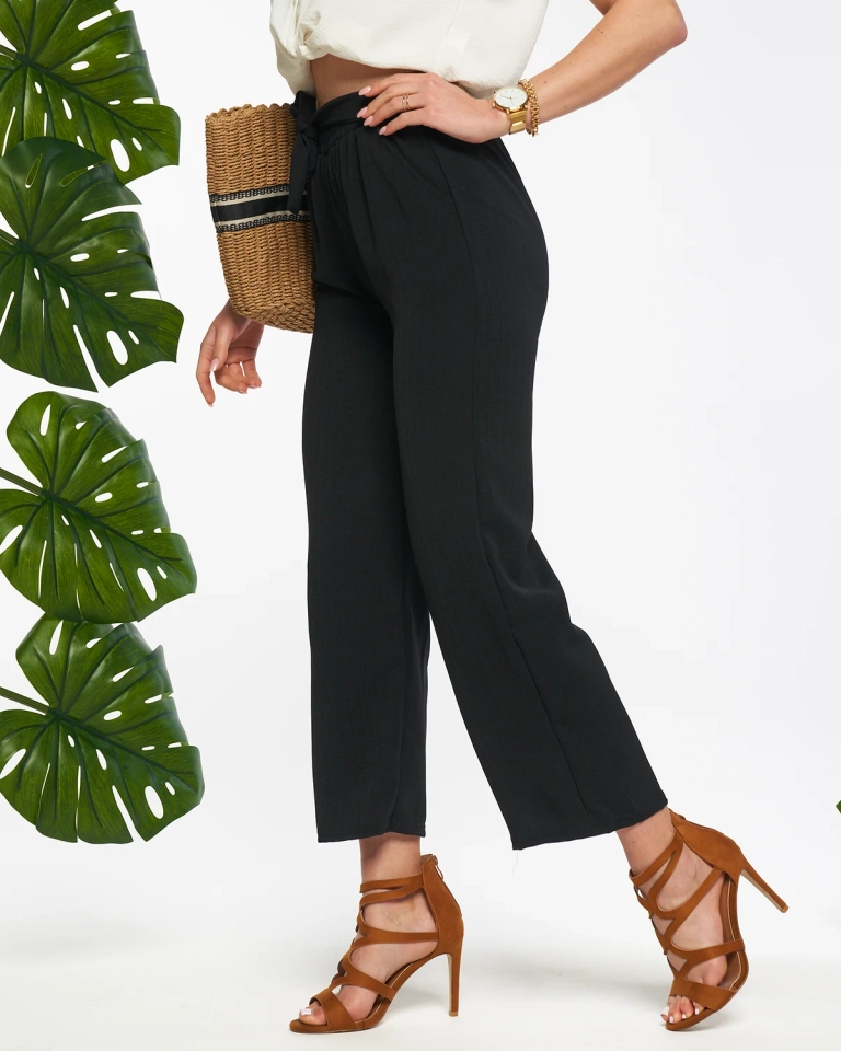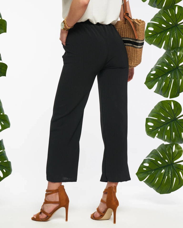 Чорні жіночі широкі штани з тканини - Одяг