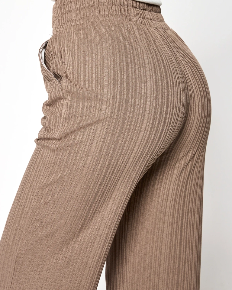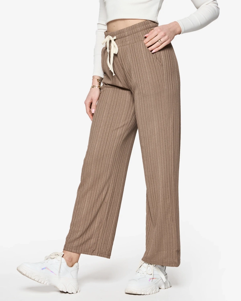 Широкі жіночі брюки в рубчик коричневого кольору - Одяг