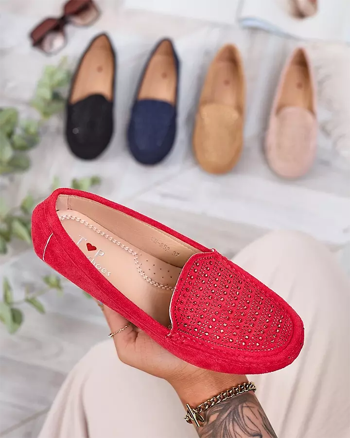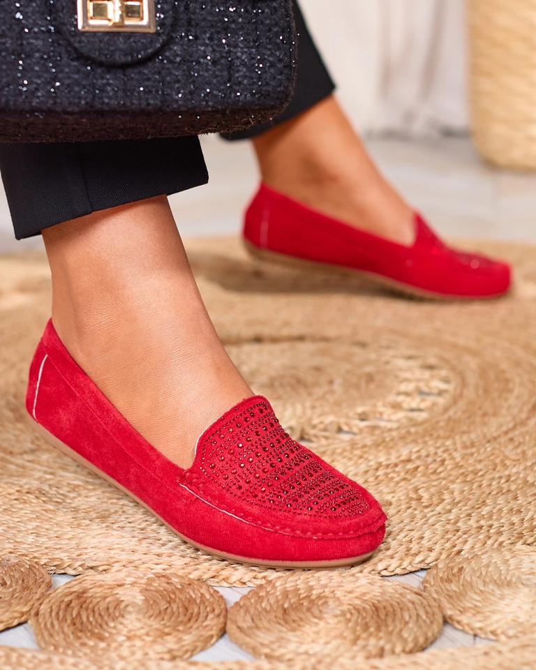 Червоні жіночі мокасини з цирконами Bretika - Взуття