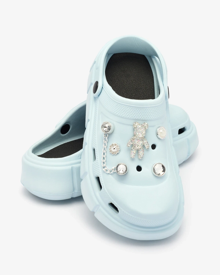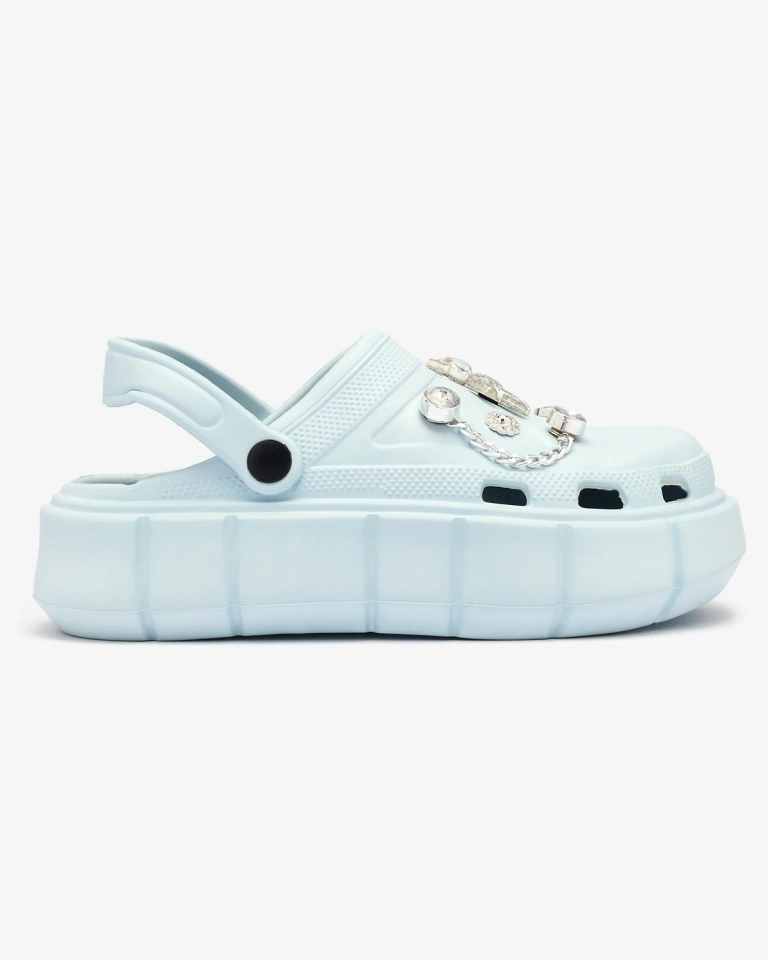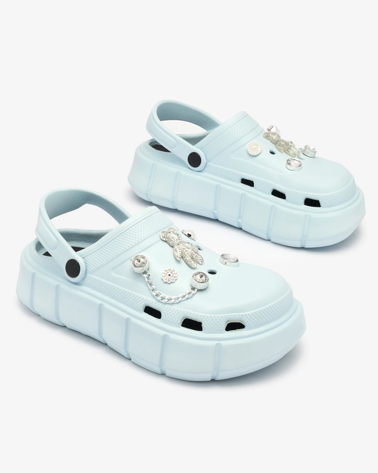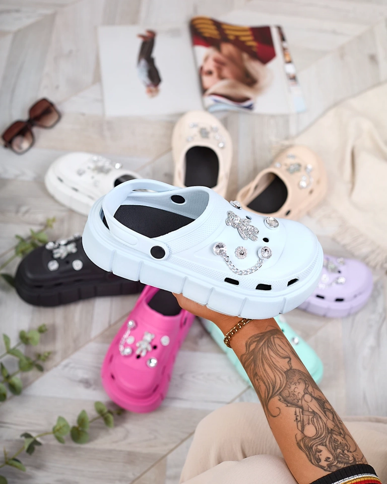 - Красиві жіночі гумові шльопанці на товстій підошві. Ажурний верх прикрашений цирконами. Ідеальний вибір для дому, саду, а також для відпустки!