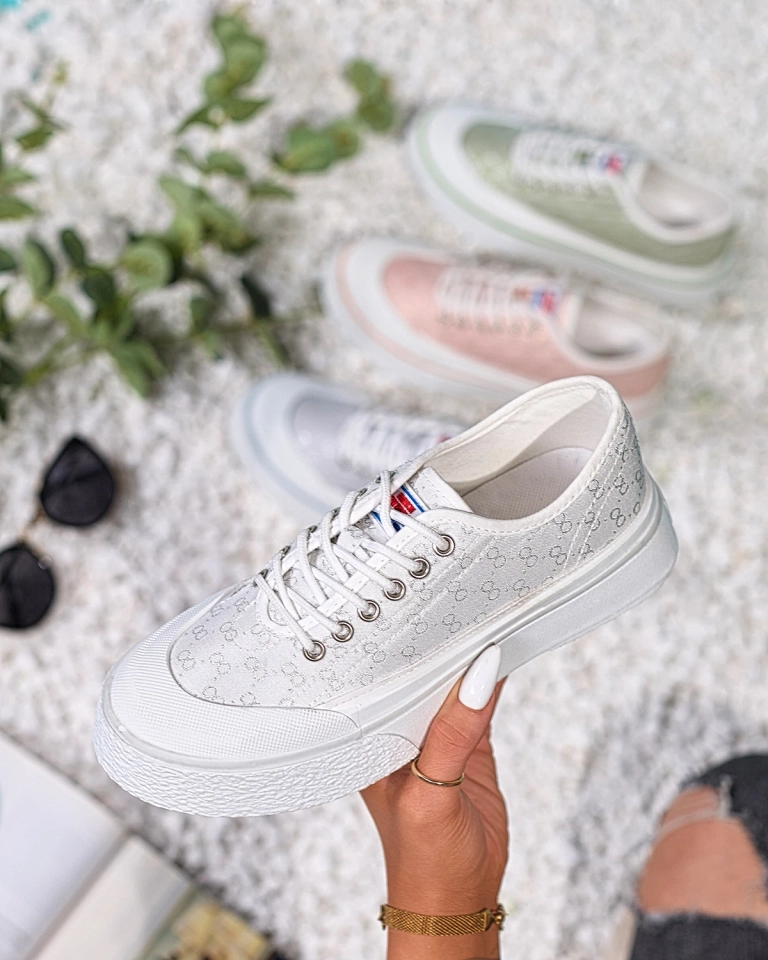 - Мега стильні жіночі кеди на шнурівці, декоровані блискучою ниткою. Модель повністю виконана з тканини. Комфортні та зручні завдяки потовщеній гумовій підошві. Ідеальні для повсякденного носіння! УВАГА: модель може мати сліди клею на п'яті.