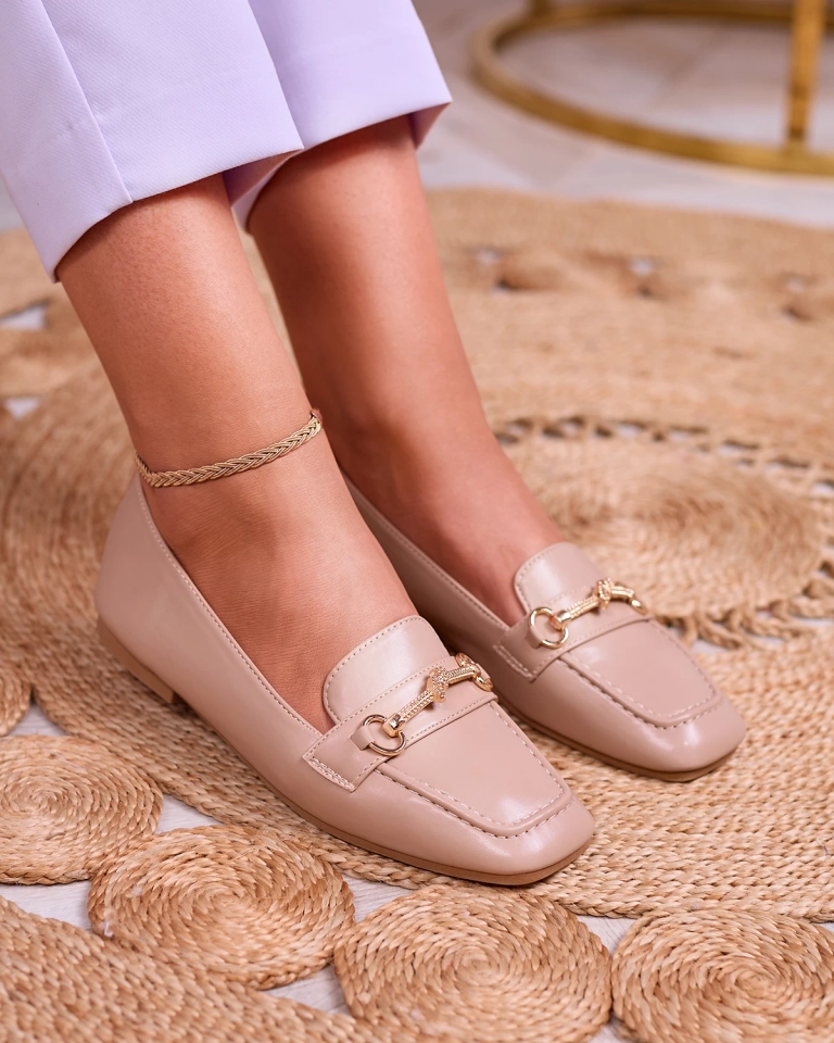 Royalfashion Світло-коричневі жіночі мокасини з золотим декором Olerika