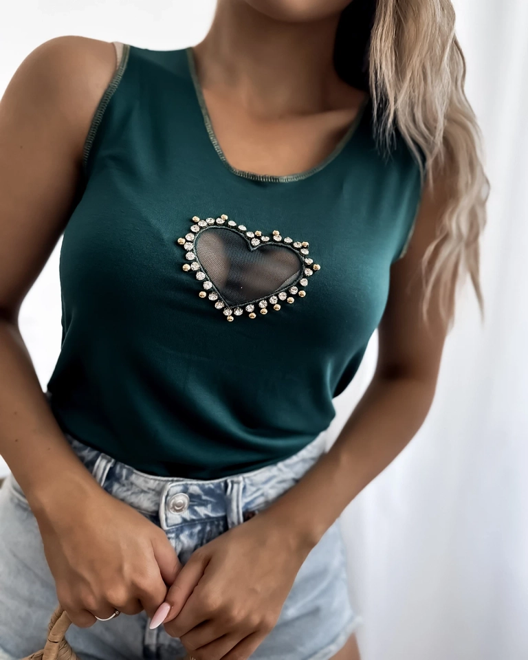 • Жіноча блуза без бретелей з круглим вирізом, спереду вишите серце з сітки, кристалів та бісеру. Ця блуза чудово поєднується з джинсовими шортами та класичними кросівками! ПРИМІТКА: Похибка вимірювання (+/-) 1 см.