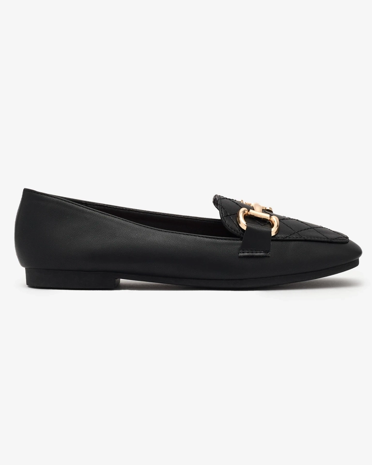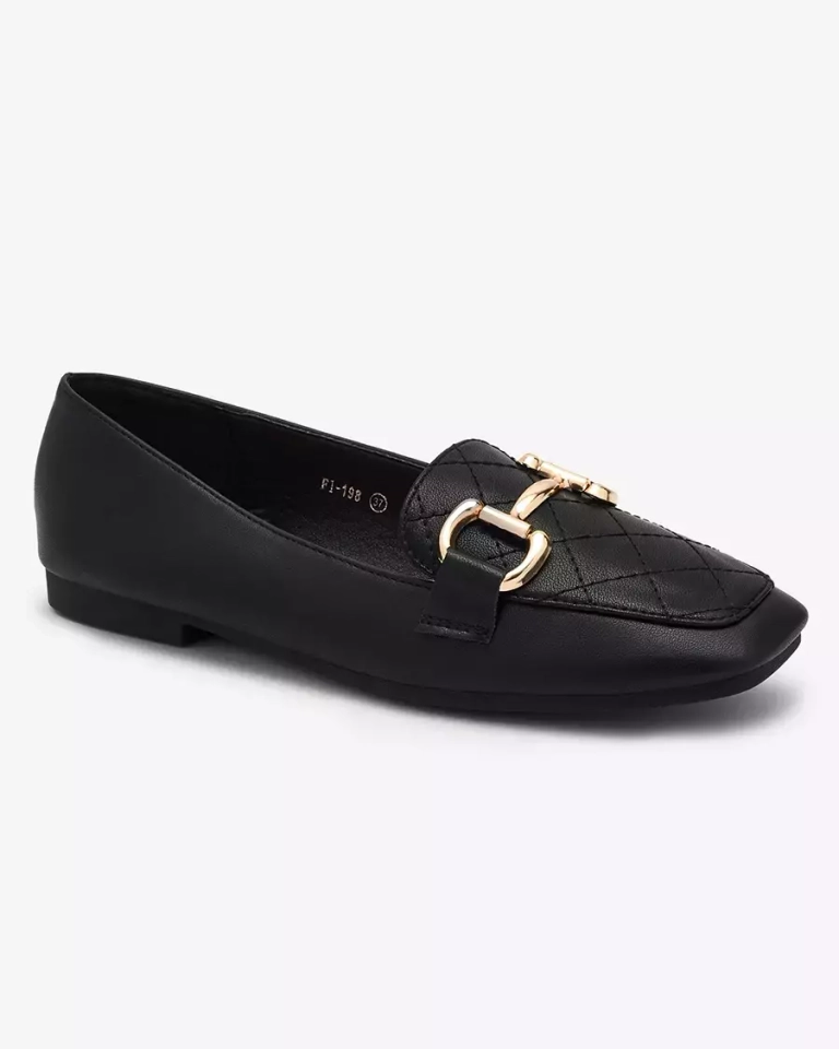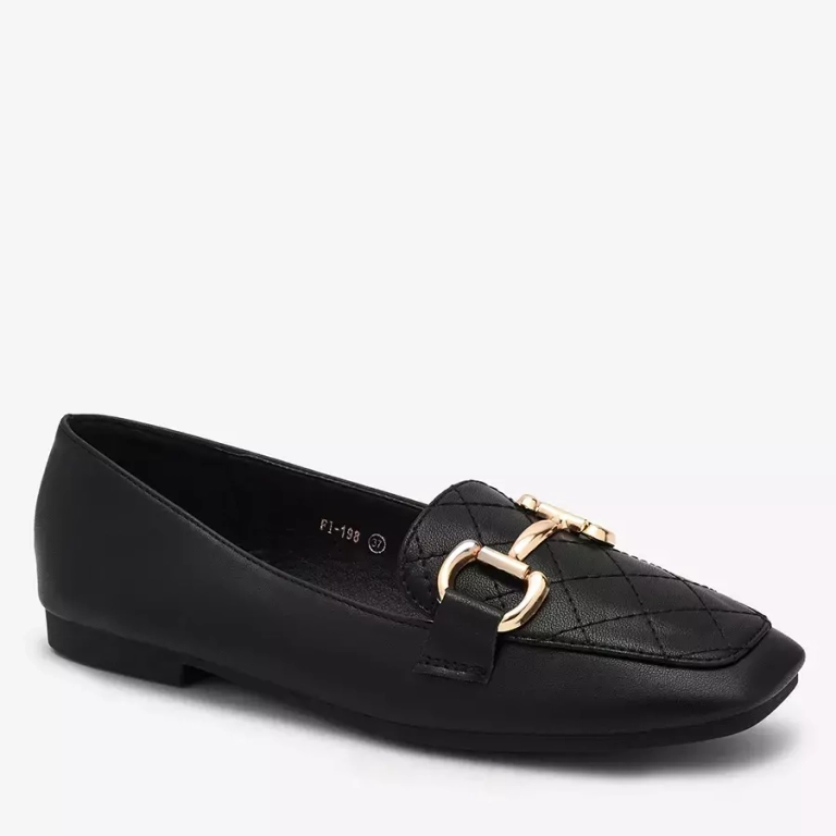 OUTLET Royalfashion Чорні стьобані жіночі мокасини з золотим декором Wetifa