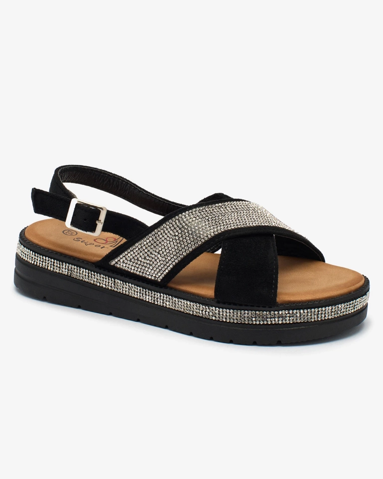 Royalfashion Чорні жіночі босоніжки з екозамші з цирконами Trikys
